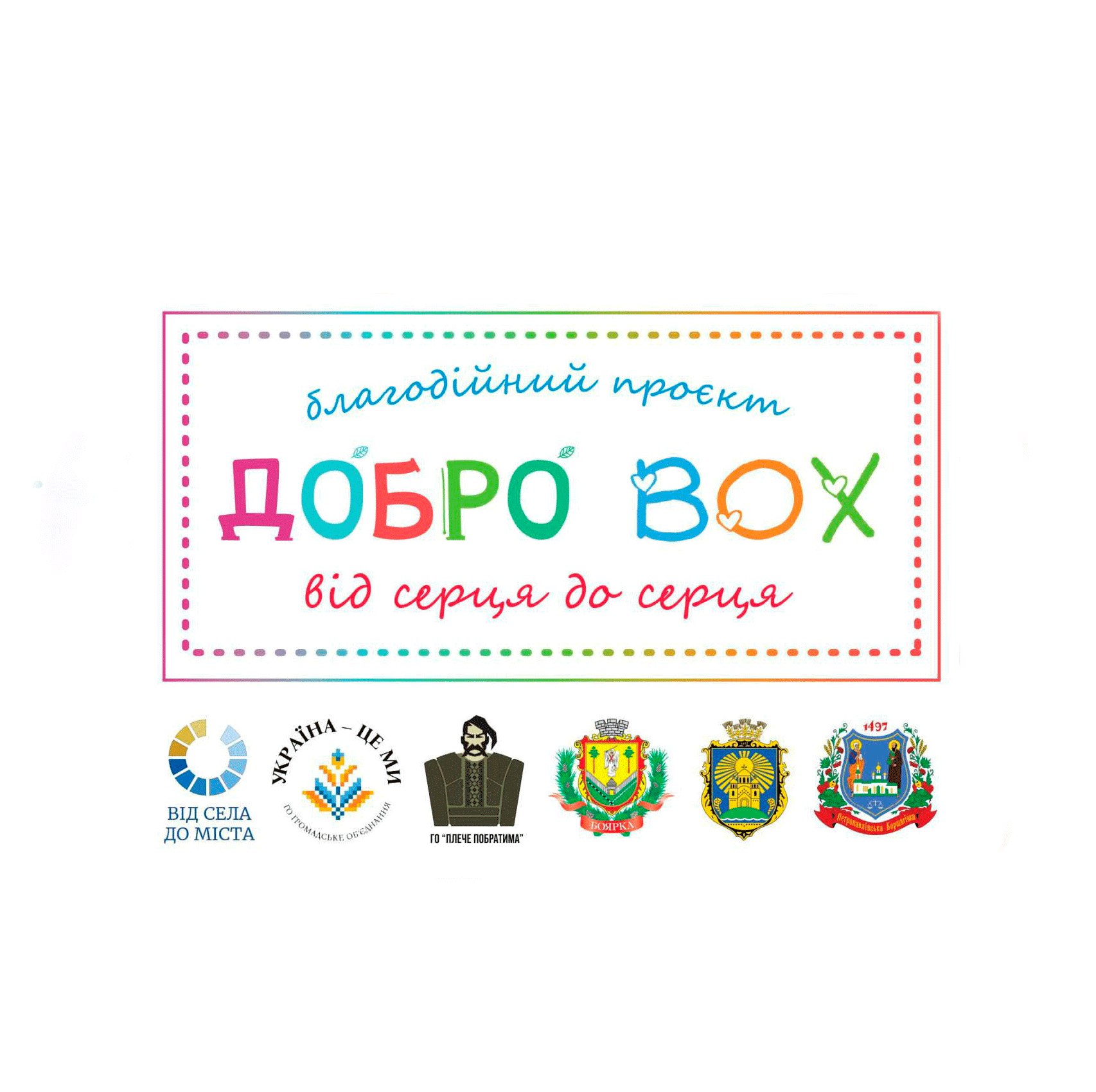 Громадська організація «Від села до міста», спільно з громадськими організаціями «Громадське об’єднання “Україна – ЦЕ МИ”» та «Асоціація ветеранів “Плече побратима”», реалізовує соціальний проєкт «Добро❤️BOX – від серця до серця», покликаний підтримати дітей з тимчасово окупованих територій, які сьогодні проживають і навчаються в прифронтових областях України (Херсонська, Запорізька, Харківська).